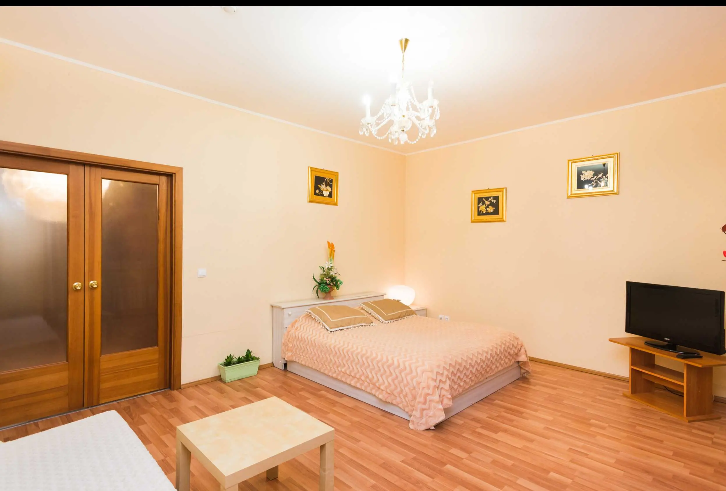 Все квартиры полностью обставлены качественной мебелью, и имеют полный набор привычных вам бытовых приборов -телевизоры, двд ,а также полностью оборудованные кухни с СВЧ, духовыми печами и плитами, фен, утюг, стиральная машина.